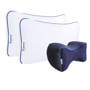 Transforma tu descanso con este combo diseñado para quienes duermen de lado. Incluye dos almohadas Be Fresh de firmeza media para un soporte ideal en la cabeza y cuello, y un cojín Side Sleeper que permite ser ubicado entre las rodillas para obtener una mejor postura al domir. Disfruta de un sueño profundo y reparador cada noche.