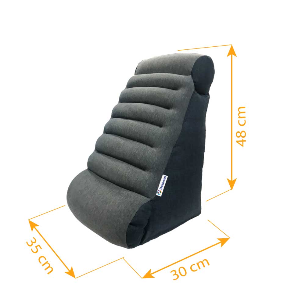Moderno diseño de un cojín en forma de triángulo, relleno de microperlas que sirve para ver televisión, leer, descansar, teletrabajar o recuperarse de cirugías.